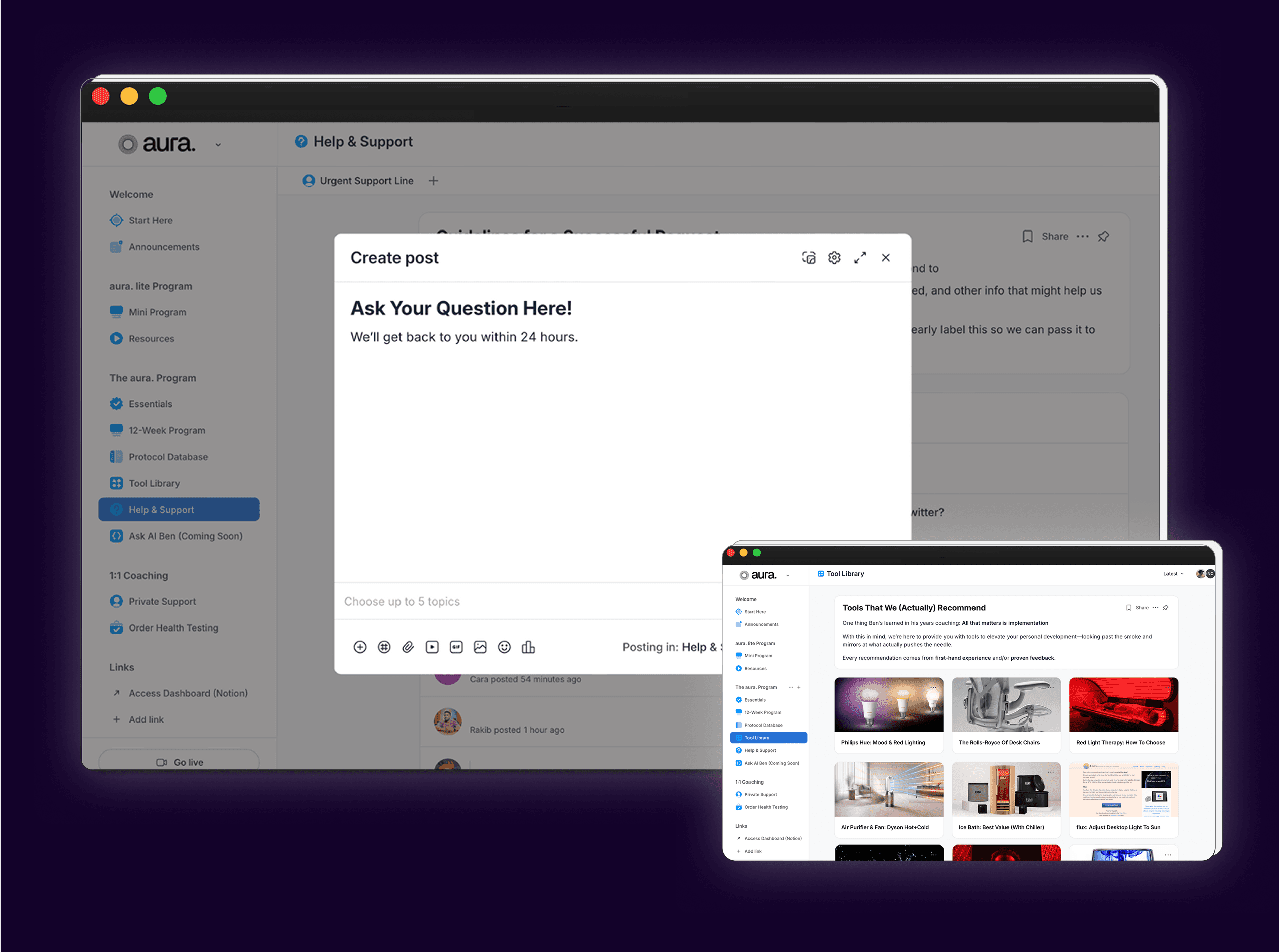 Access Ben & The aura. Team directly inside the platform with a 24-hour response time and new materials posted every week.