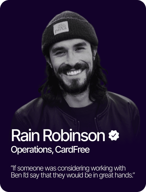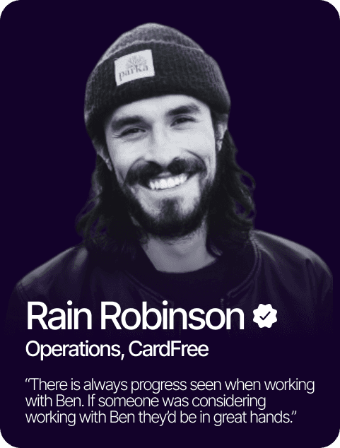 "Ben has been an incredible mentor. His guidance allowed me to free up valuable time, enabling me to focus more on my work and business. Thanks to Ben, my productivity and organization have significantly improved while optimising my health, making a remarkable difference in my professional and personal life.”