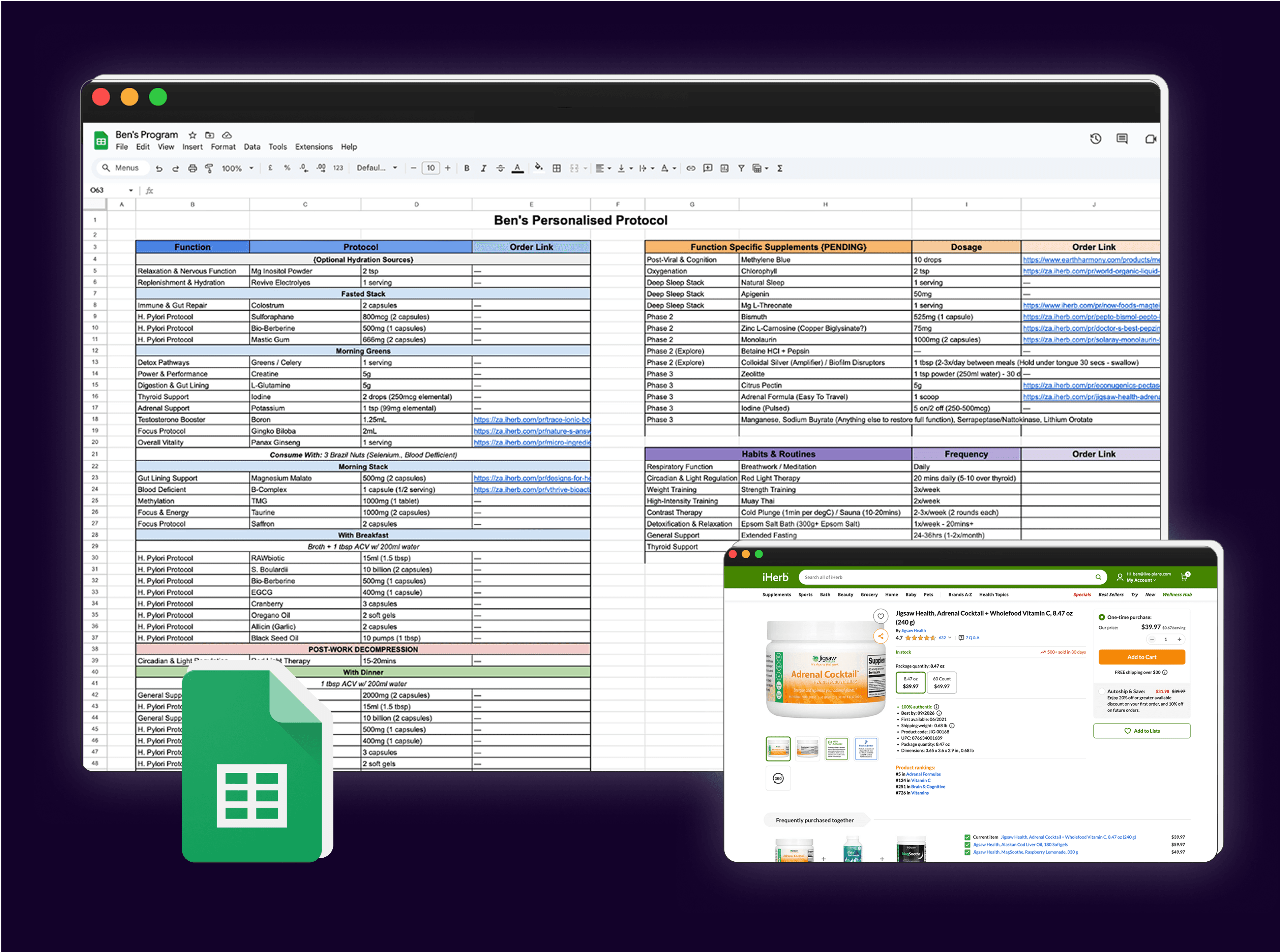 Build a tailored protocol that fits your needs, selecting from our library of tried-and-tested supplements, tools, and techniques.